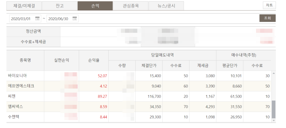 주식을 처음 할때라 잃을수도 있다는 두려움에 많은 돈을 투자하지는 않고 각각 백만원이하 정도로만 투자했습니다.