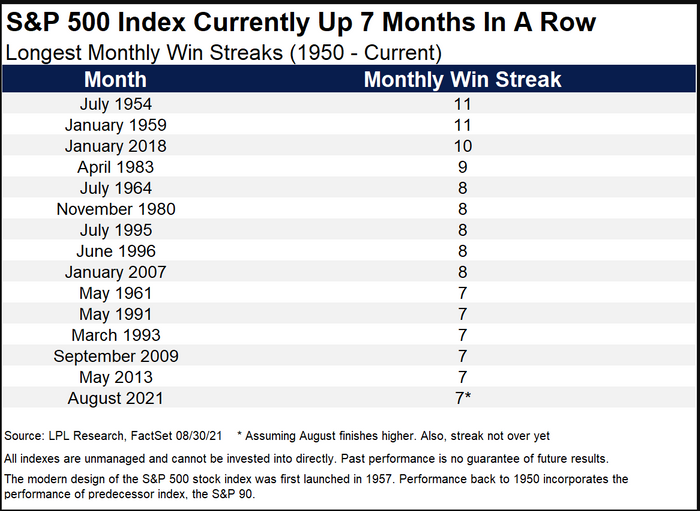LPL 파이낸셜의 최고 시장 전략가인 그는 "이 강세장이 2021년에 우려하는 의견들을 거의 날려보냈지만 역사적으로 9월은 주식 최악의 달이라는 것을 잊지 말자"고 언급했습니다.